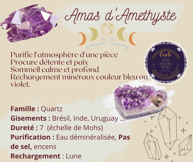 - Lithothérapie : On lui attribue des propriétés apaisantes, favorisant le sommeil, et un soutien contre les addictions.